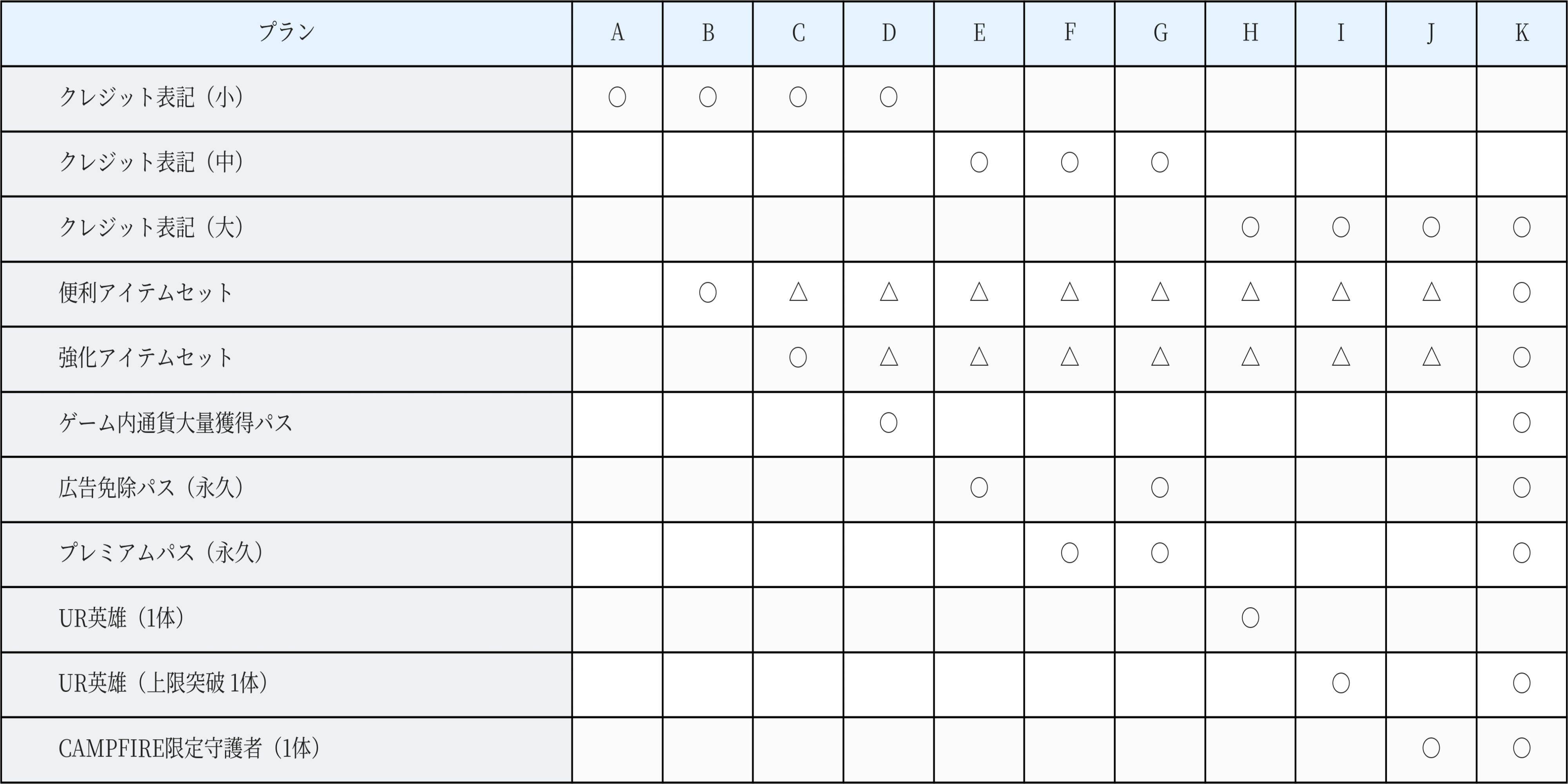 A〜Gコースのゲーム内リターン提供/クレジット表記反映。
