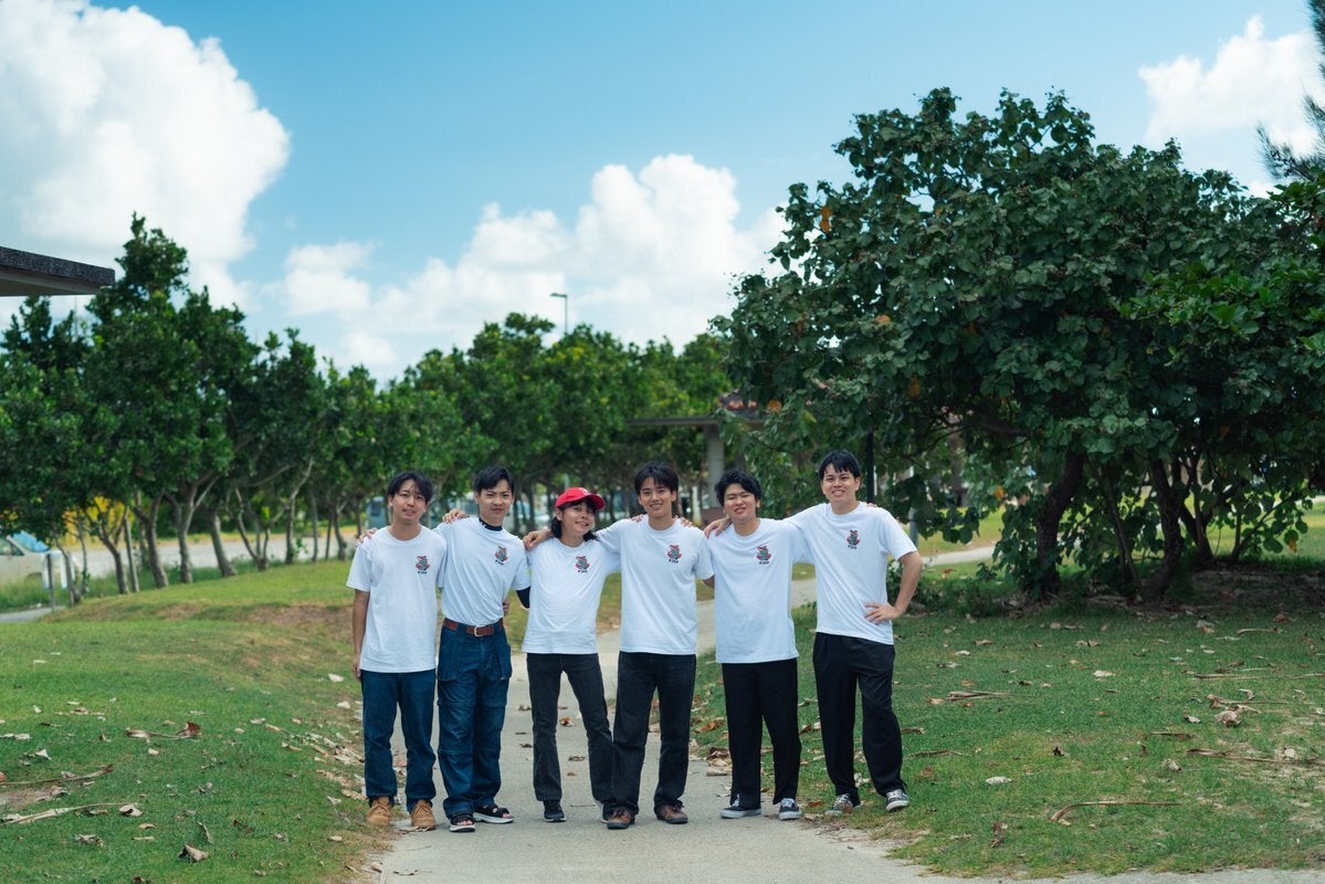 こんにちは!私たちは琉球大学と沖縄国際大学の学生で結成されたチーム「しままーい」です。代表の辺土名洸です!(右から3番目)