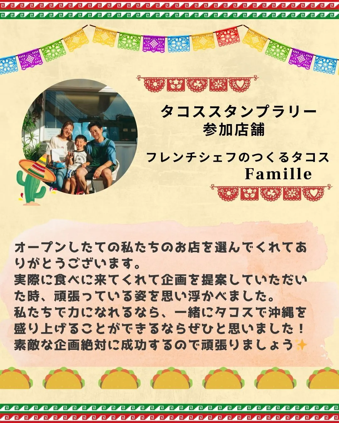 【応援メッセージ紹介】 Vol.6 「フレンチシェフのつくるタコス Famille」