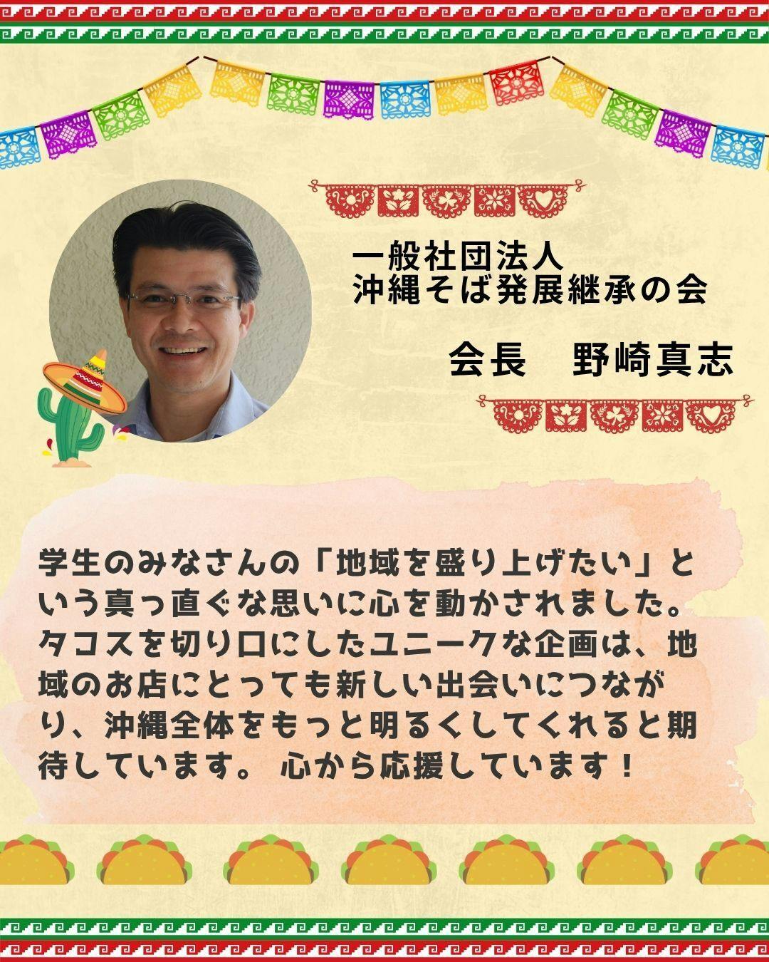 一般社団法人 沖縄そば継承発展の会 会長の野崎真志さんから応援メッセージを頂きました!