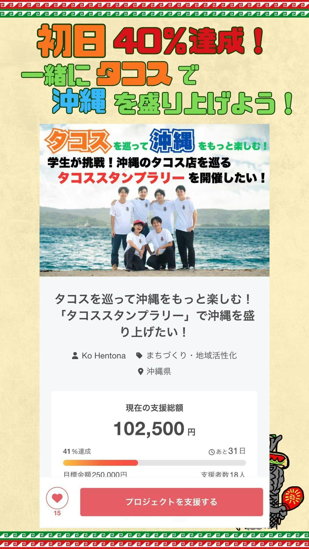 皆様の温かい応援と拡散のおかげで、最高のスタートを切ることができました!とはいえ、目標達成まであと60%!