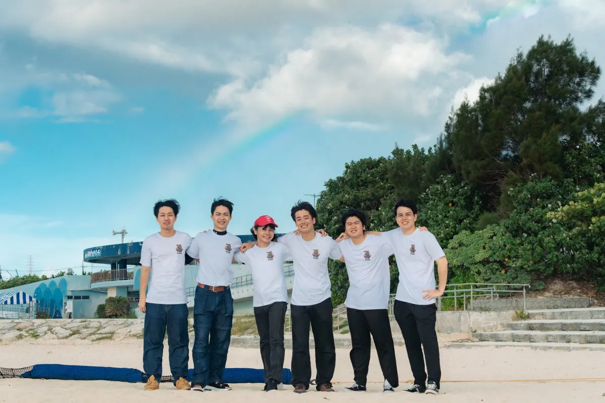 こんにちは!私たちは琉球大学と沖縄国際大学の学生で結成されたチーム「しままーい」です。代表の辺土名洸です!(右から3番目)