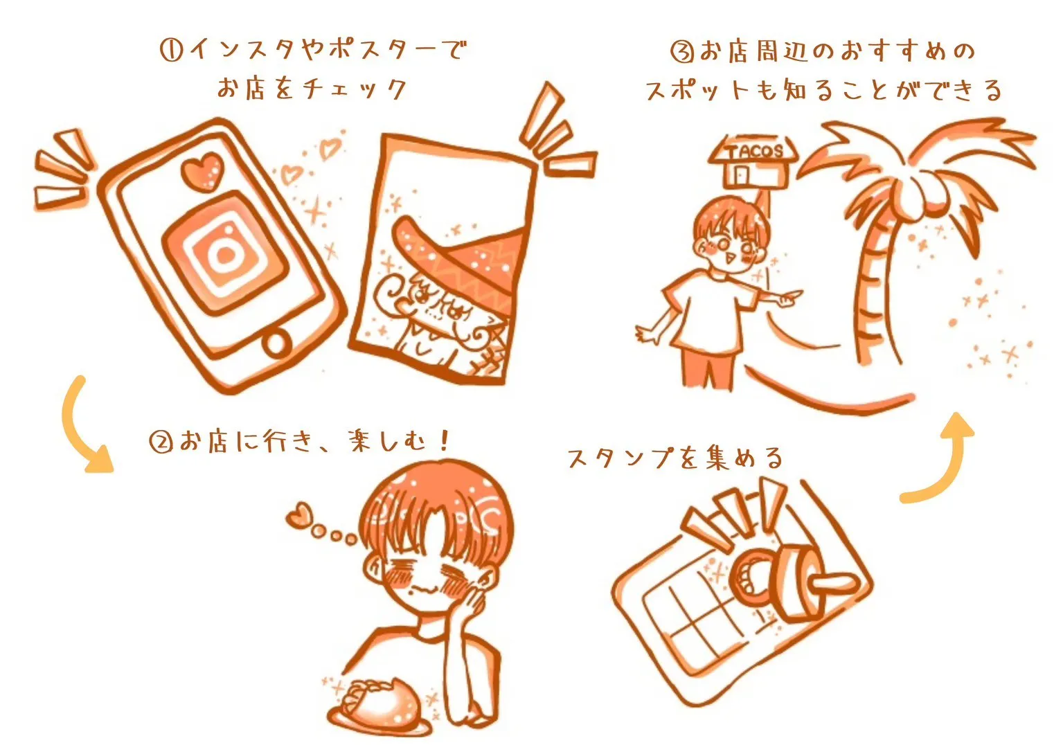 2 お店を訪れてタコスを楽しみ、スタンプカードにスタンプを集める