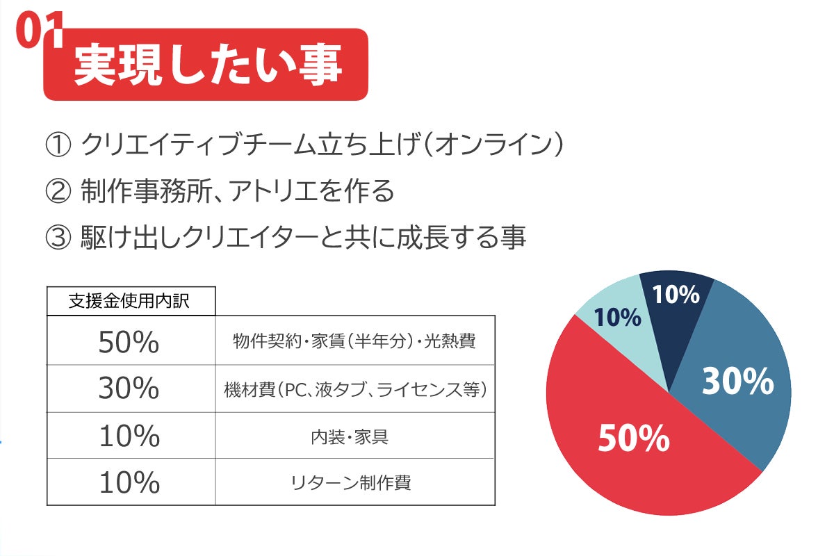 このプロジェクトでは、機材が高くて手が出ない。モチベーションが続かず、本気の時間がない。そんな若手クリエイターのために――“夢を叶えるためのアトリエ”とクリエイティブチームを作ります!