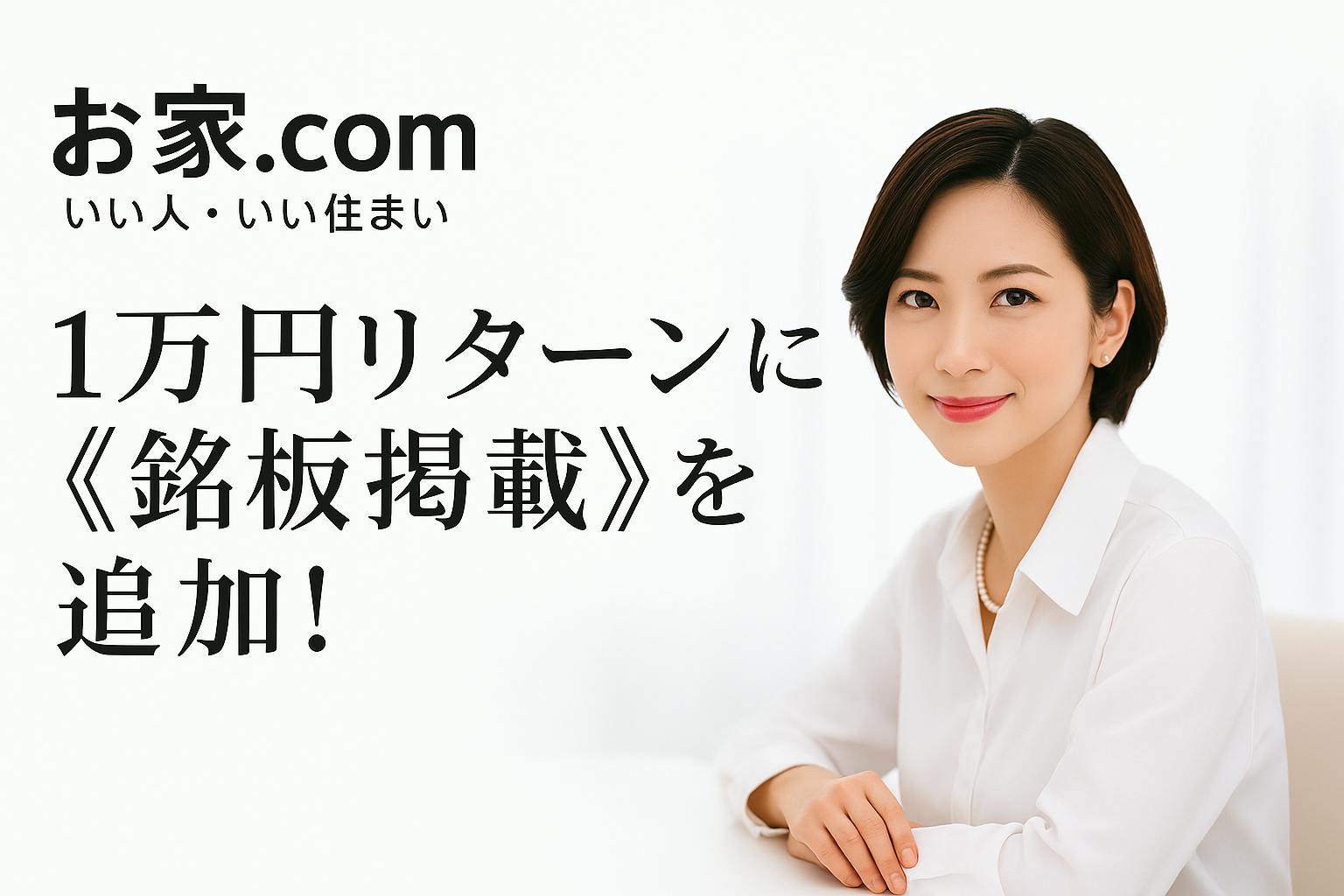 **あなたの支援は、このムーブメントの『顔』となり、数百万人の人々に、新しい不動産取引の価値観を広げる力となります。**この広告を見た人が、真っ先に「お家.com」を選ぶ社会を、共に創り上げましょう。