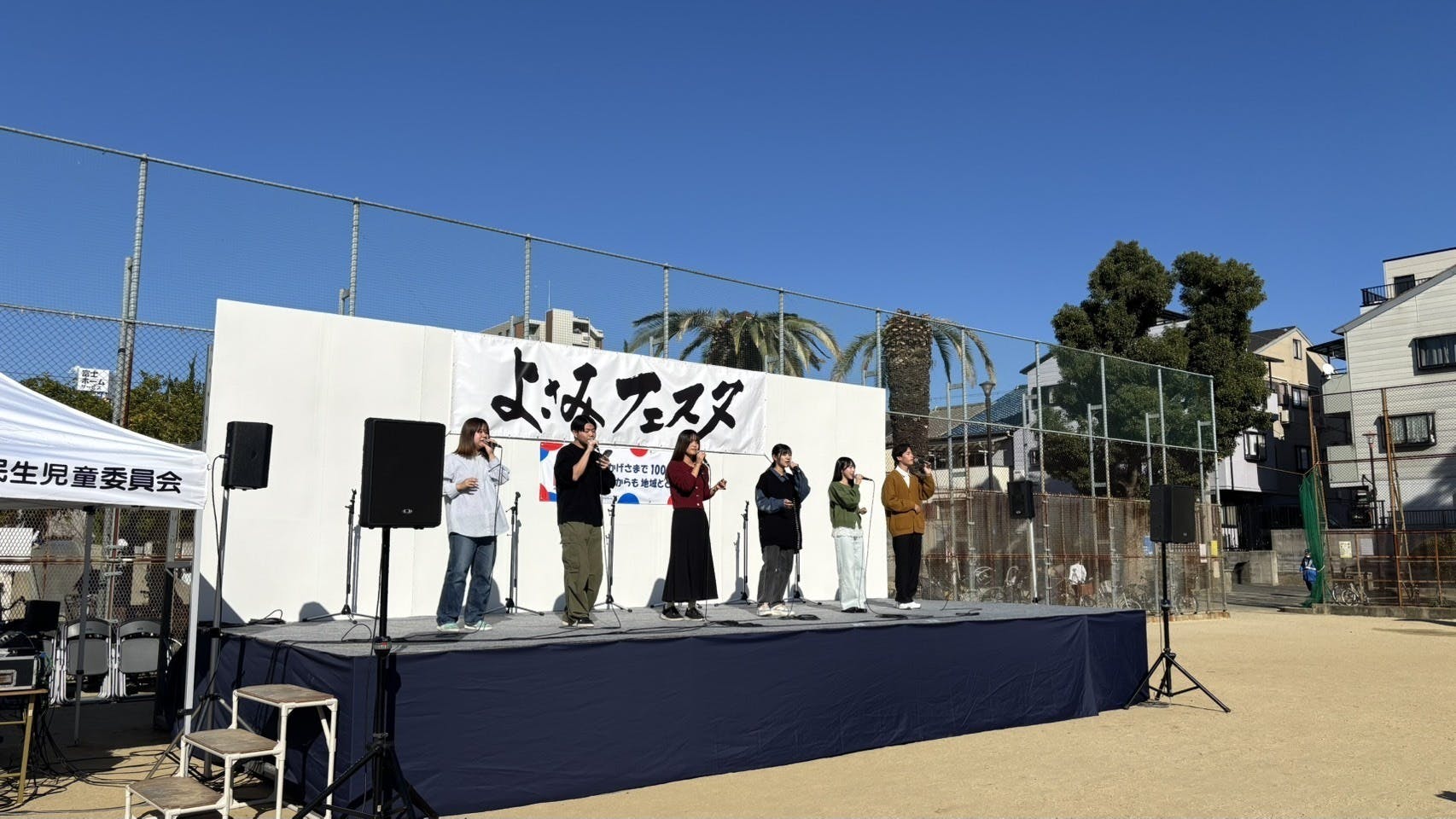 今回は、11月16日(日)に依羅地域のあびこ公園グランドにて開催されました「よさみフェスタ2025」にAccordから4バンドが出演しました!地域全体で参加取組できる唯一のお祭りとして、世代をこえたつながりつくりや地域に活気をもたらすことを目的に企画されたもので、Accordは今回初めてこのイベントに参加させていただきました!