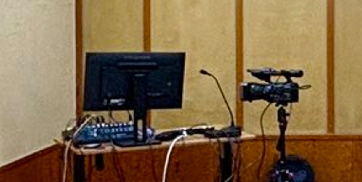 85インチディスプレイに加えて配信用機材も用意されています。