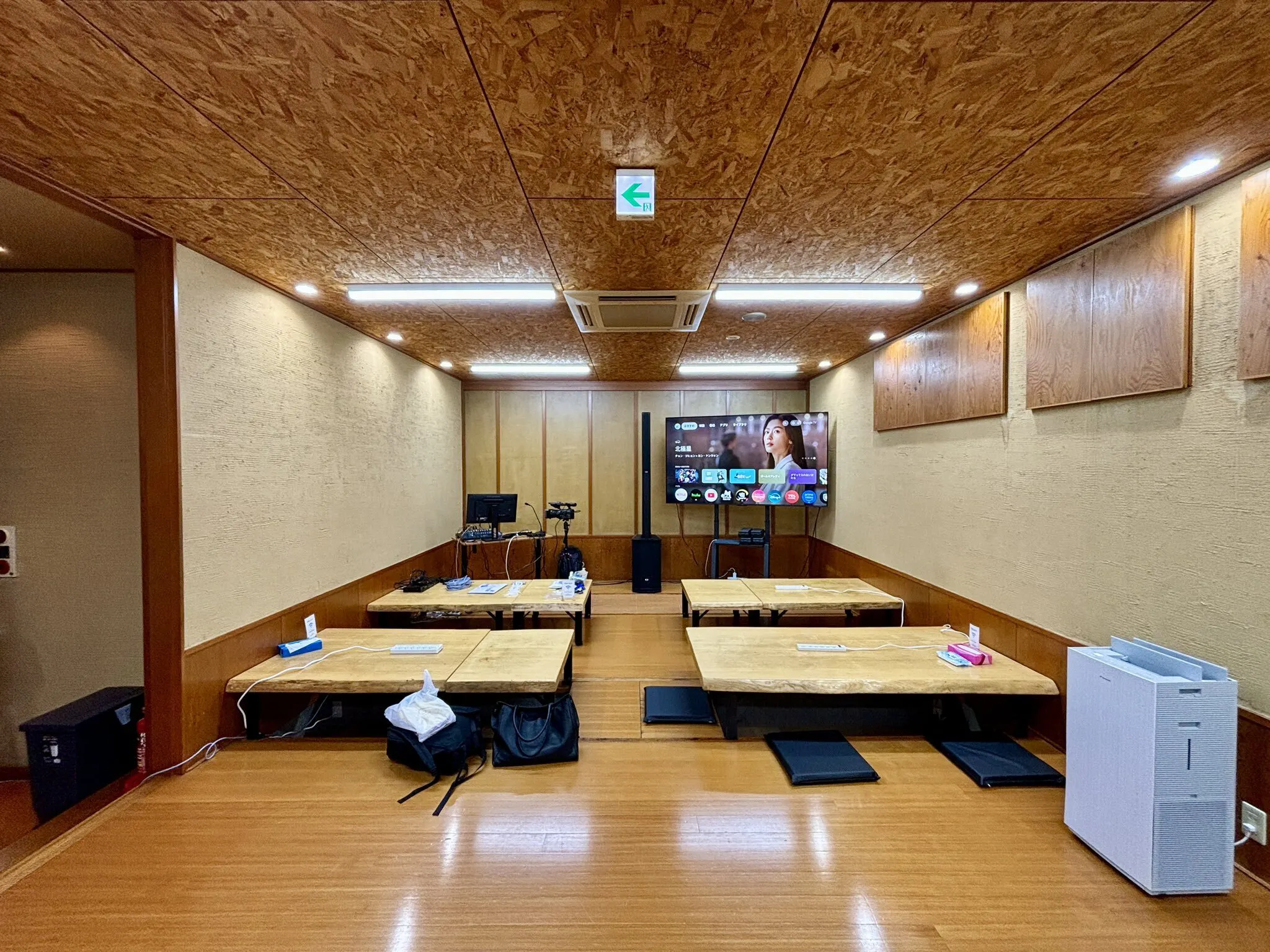 SUNABACO寝屋川の会場は掘りごたつに一枚木の広々としたテーブル、