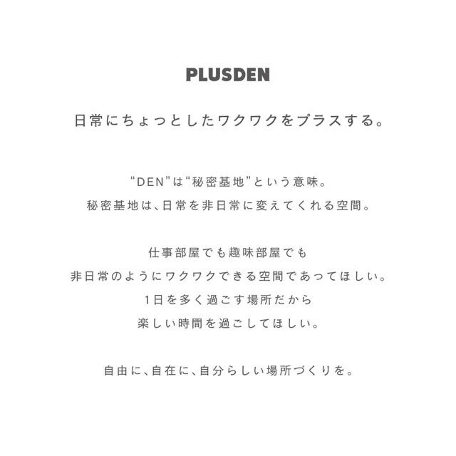 PLUSDENは「 日常にちょっとしたワクワクをプラスする。 」をコンセプト