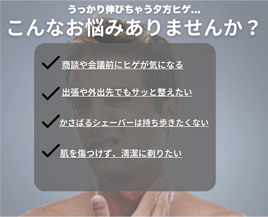 従来のシェーバーは「大きくて重い」「持ち運びに不便」という悩みがありました。