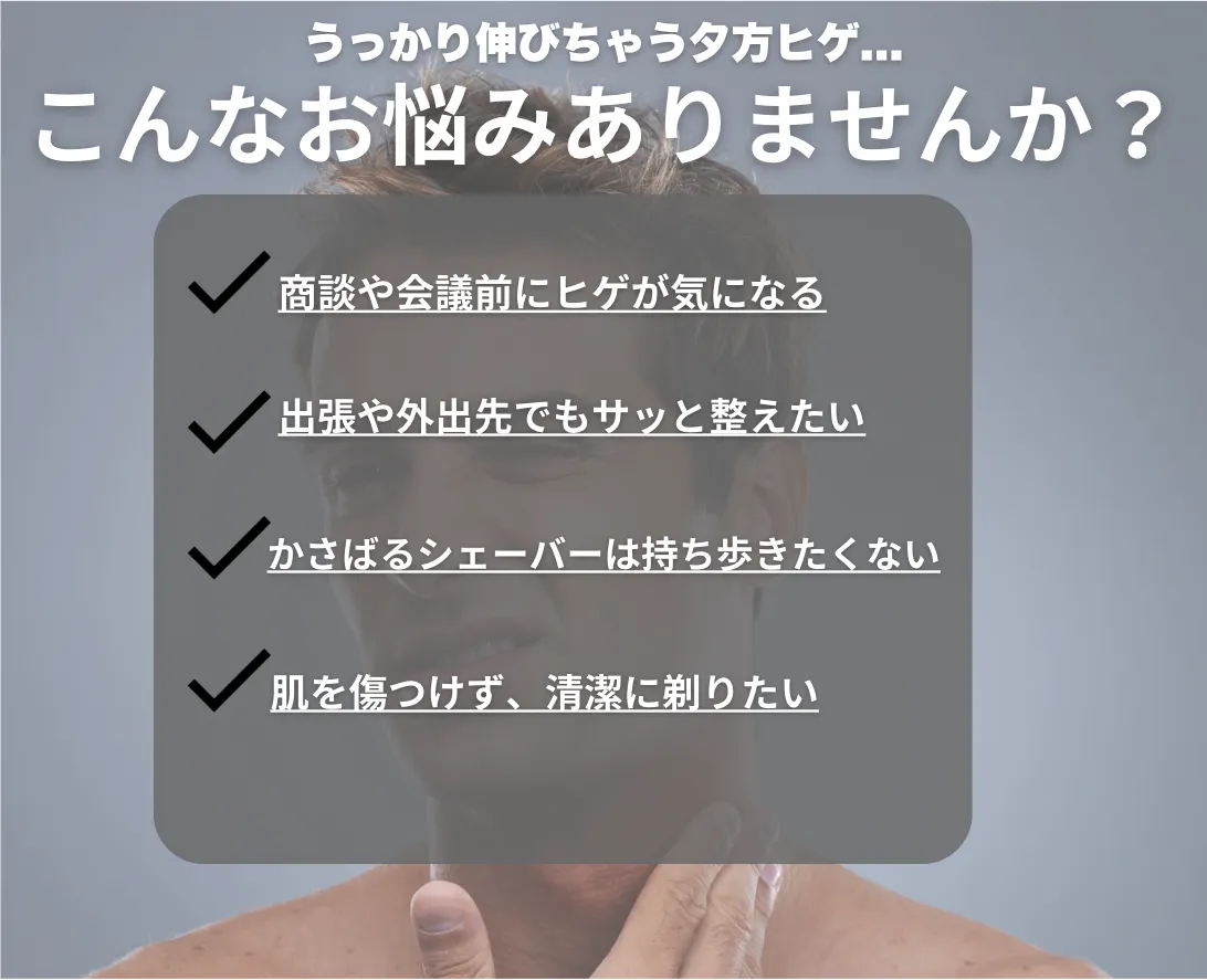 一般的なコンパクトシェーバーでは難しい「深剃り」を可能にし、夕方の青ヒゲ対策もバッチリ。