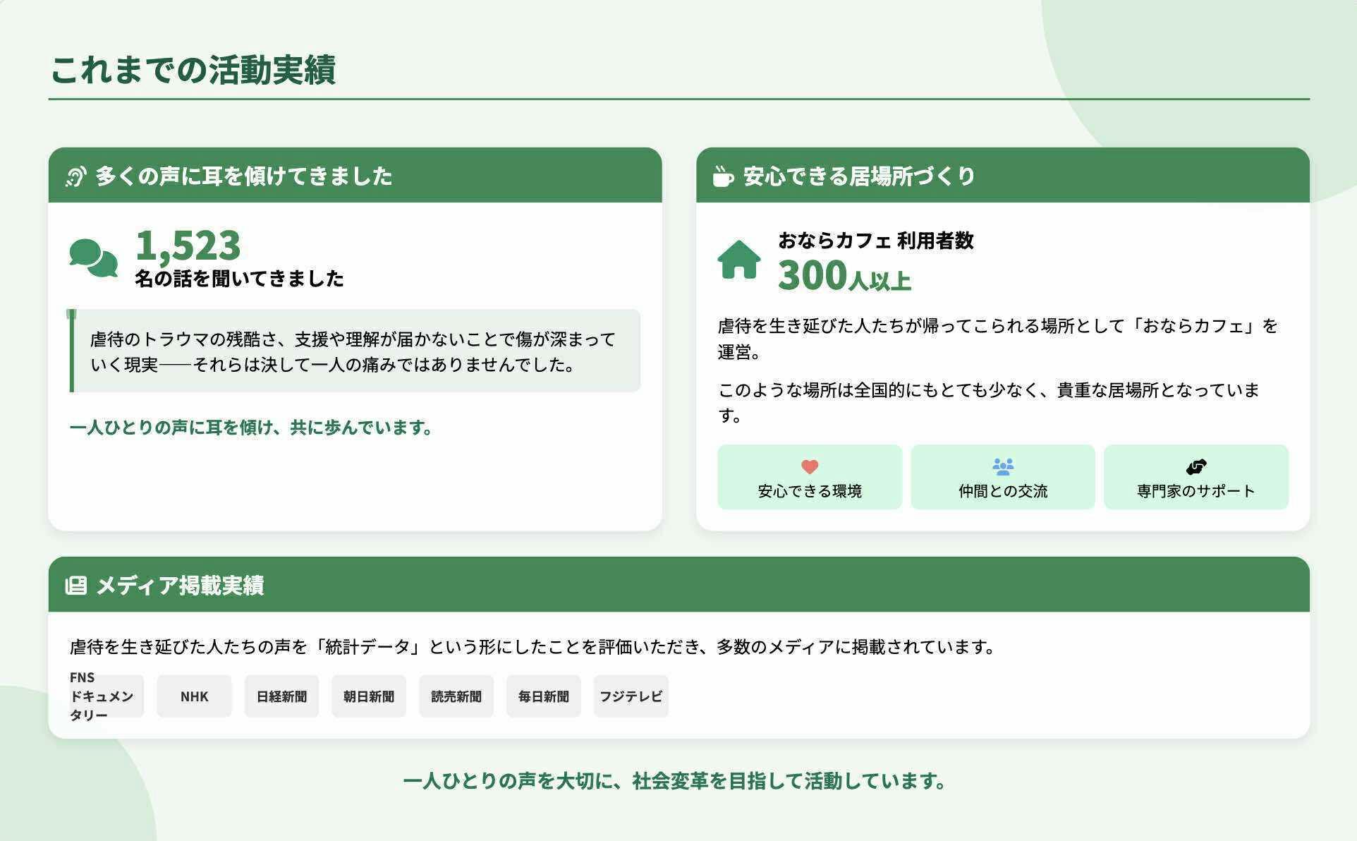いまも虐待によるトラウマに苦しんでいる方たちのもとに確かに届き、