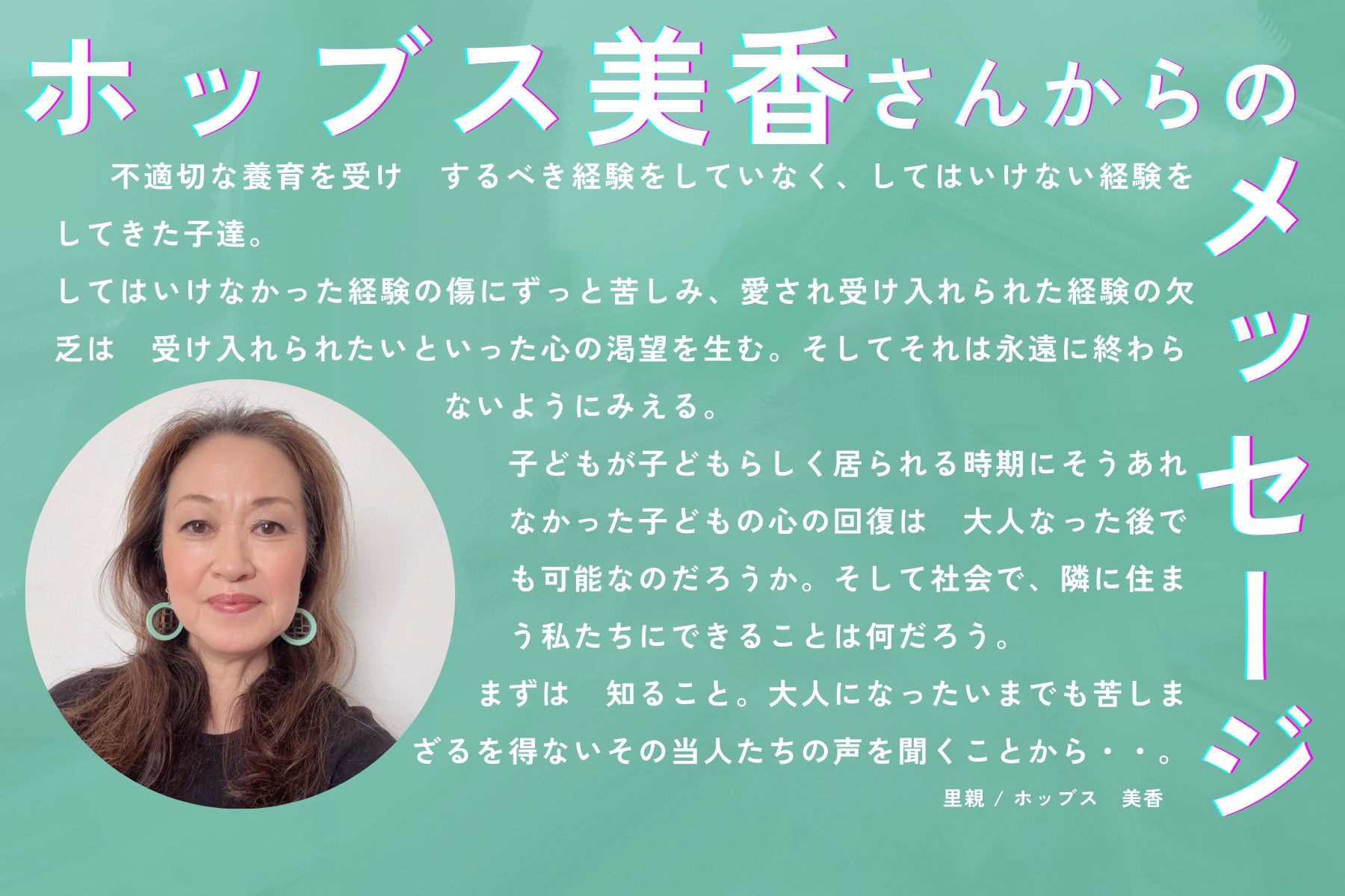 いまも虐待によるトラウマに苦しんでいる方たちのもとに確かに届き、