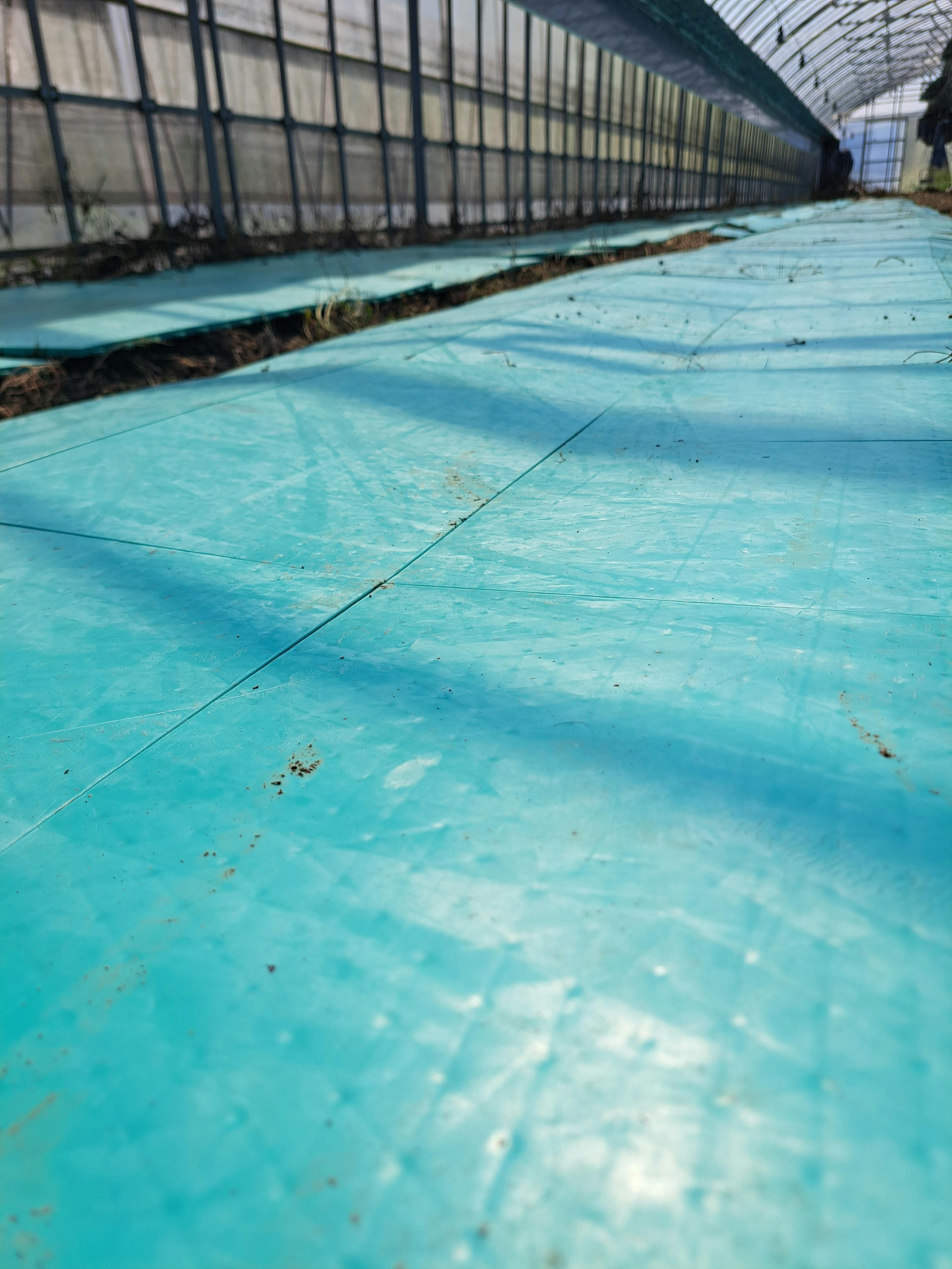 パネルを敷いて、この上にトレイを並べ、ポリポット栽培を実施する予定です。