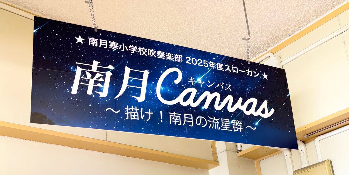 今年度は「南月Canvas ~描け!南月の流星群~」というスローガンのもと、真っ白な南月吹部のキャンバスに、ひとりひとりが輝く演奏で鮮やかに描いていこうという想いを胸に、聴いて下さる方に笑顔と感動を届けられる演奏を目指して練習に取り組んでいます。