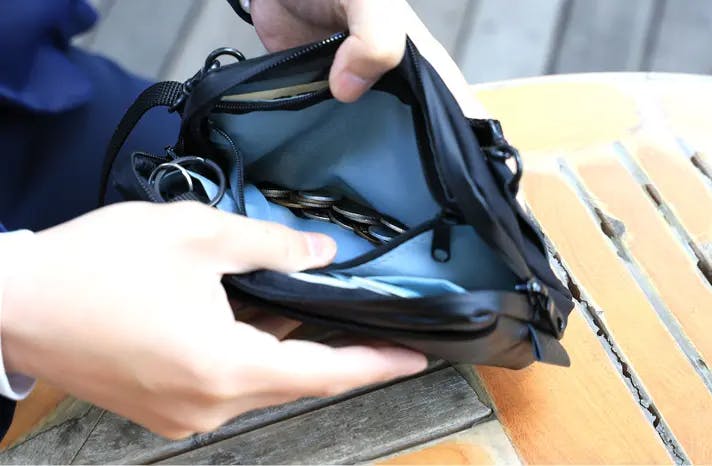 貴重品等をひとまとめにして「バッグ イン バッグ」として、持ち歩く方法もお勧めです。