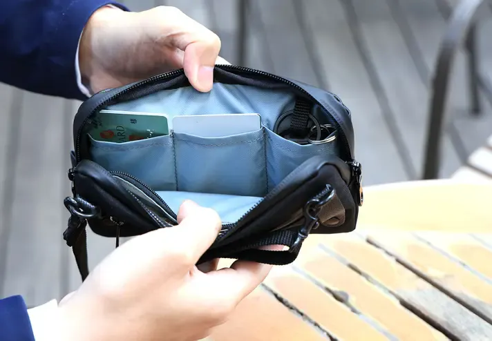 貴重品等をひとまとめにして「バッグ イン バッグ」として、持ち歩く方法もお勧めです。
