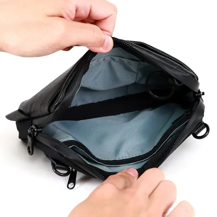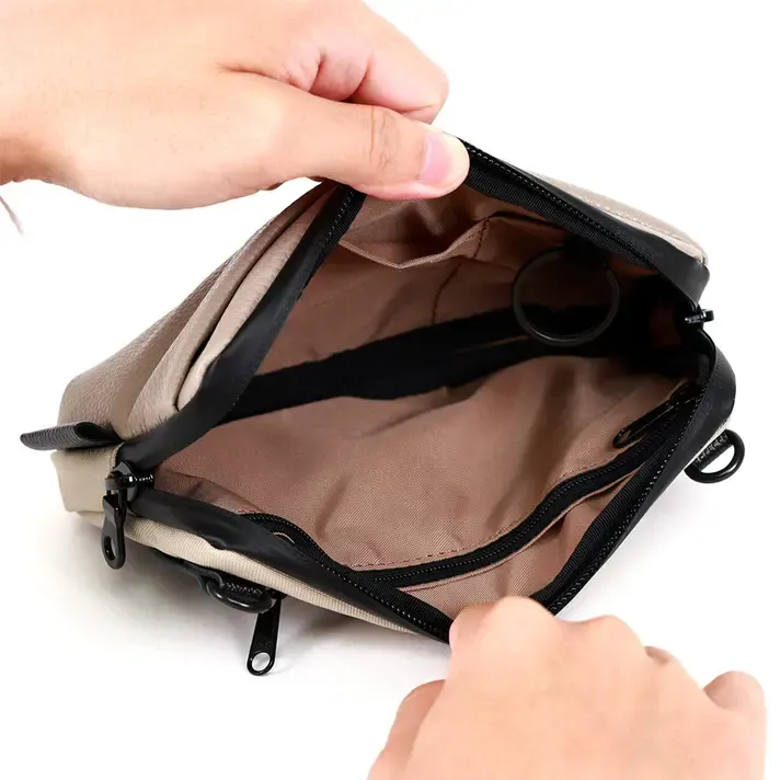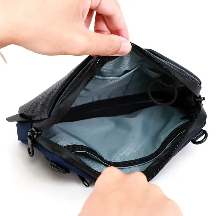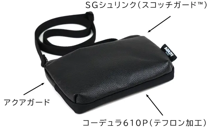 一般的な水に弱い革素材ではなく、「革×ナイロン」→「撥水レザー×撥水ポリエステル」にする事により、急な雨に負けないデザインに仕上げています。