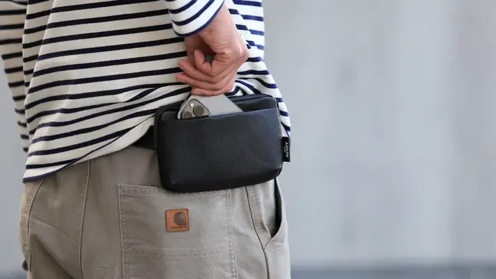 付属のショルダーベルトを外して背面のループにベルトを通せば、ベルトポーチのように使えます。