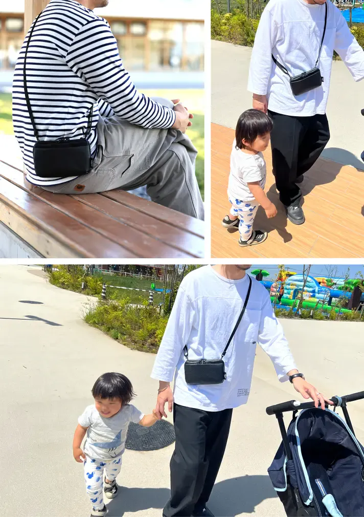 お子様と手を繋いだり、遊具で一緒に遊ぶと事を想定した身軽に動ける「手ぶら」に限りなく近いミニバッグです。