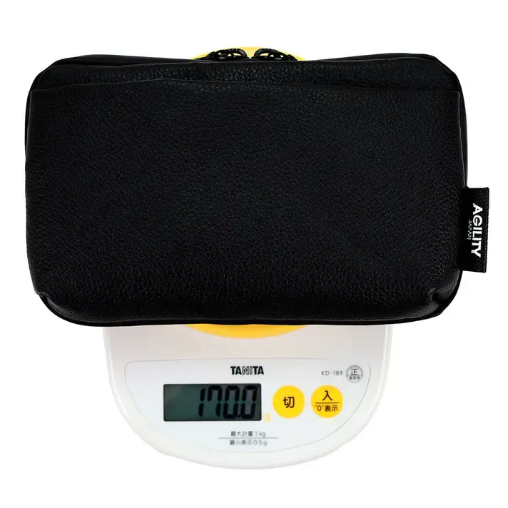 前面に革、背面にポリエステルを組み合わせているた「170g(ベルト含む)」と軽量な仕上がりです。