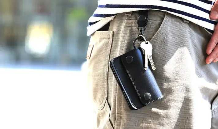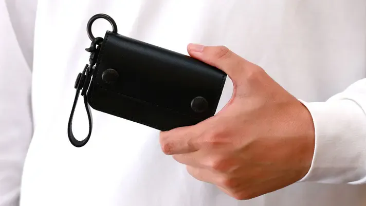 また、一般的なトラッカーウォレットのようにウォレットチェーンに繋いでもおしゃれに決まります。