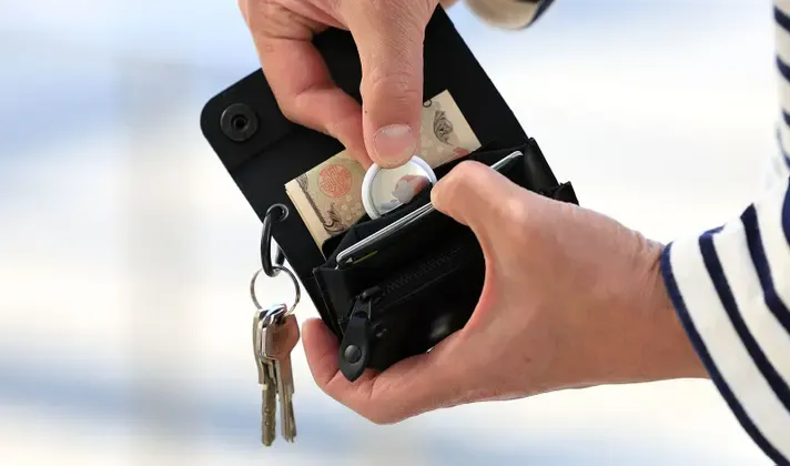 AirTag 31.9mm×8mm(直径×厚み)の収納を基準としたポケットです。※AirTagはApple.Incの登録商標です。