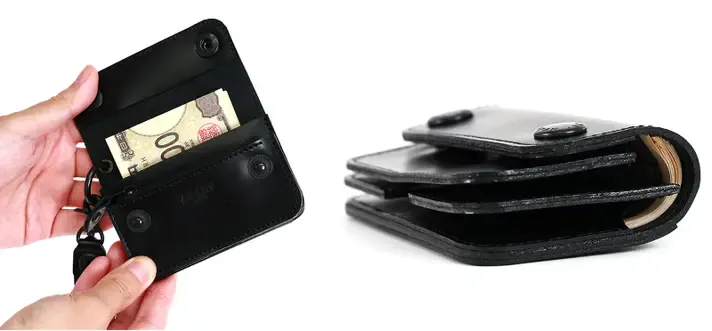 こちらの「トラッカーミニ」は、キャッシュレス化の流れから多くの現金・カード類が必要なくなった現代に合わせ、ダウンサイジングしたミニ財布です。