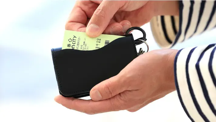 背面にはカードが入るポケットが1カ所。駐車券等の一時保管スペースにも適しています。また、交通系ICカードを入れておけば、パスケースのように改札にタッチすることもできます。