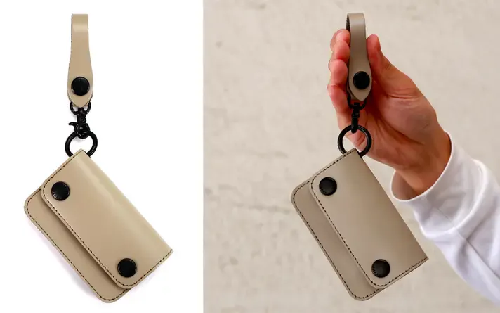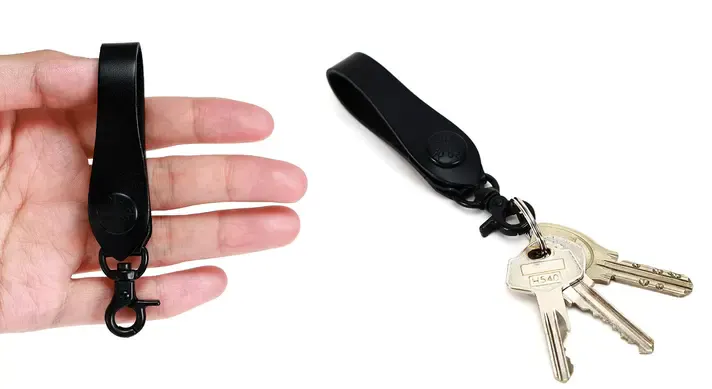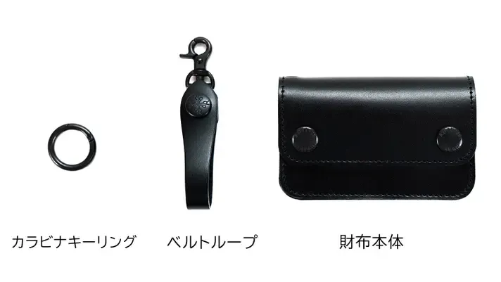 トラッカーミニには取り外せる「ベルトループ」と「カラビナキーリング」が付属します。この2点の付属品は、財布と別で使うこともできる便利な小物たちです。