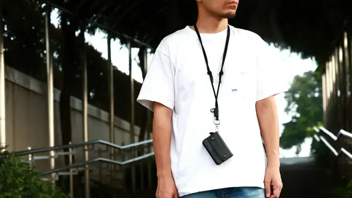 ベルトループで腰から下げる以外にも「ネックストラップ」を使用して「ネックウォレット」のように下げることが可能。