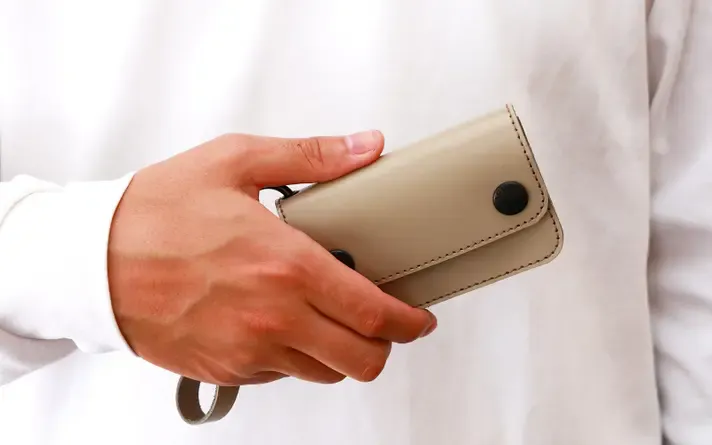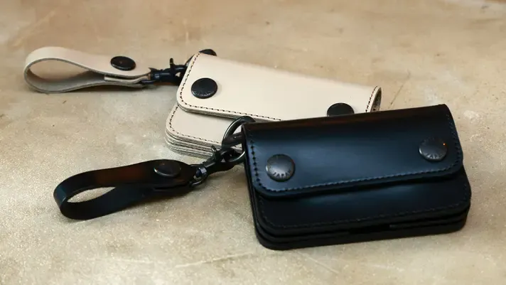 そんな「トラッカーウォレット」をベースにミニマルなデザインでにまとめた今回のお財布。テーマを大きく「撥水」・「ぶらさげる」の2つに設定、現代風の味付けをしプロジェクトに挑戦します。