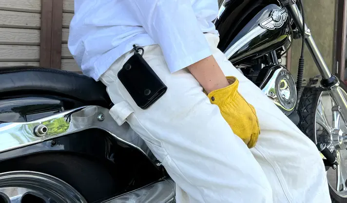 「チェーン」や「コード」を付けて紛失防止や持ち運びの工夫がされています。その見た目からバイカーが目をつけるようになり、ファッションアイテムの一つとして定着しました。