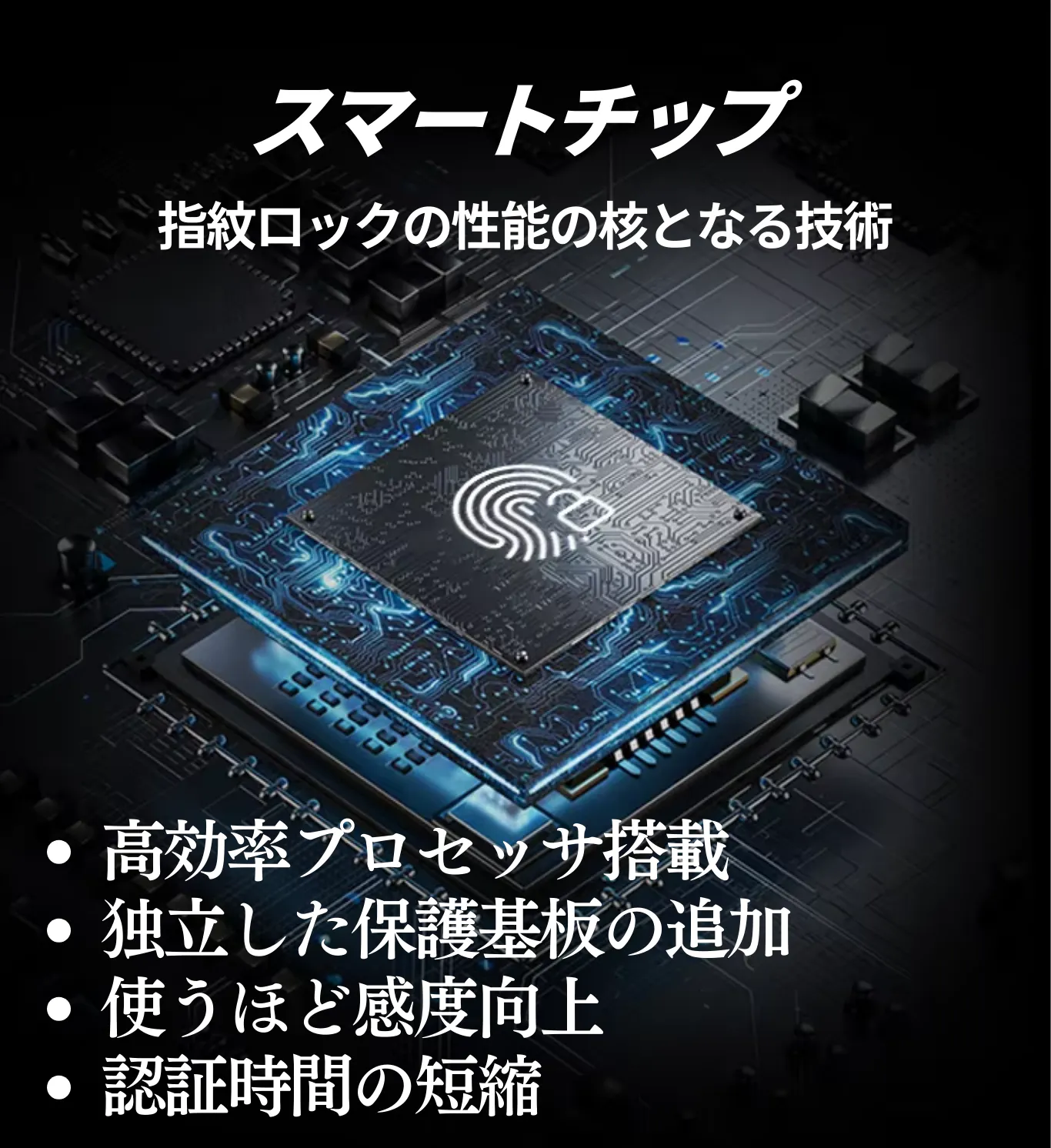 指紋認証速度:<0.5 秒(認証)、<1 秒(解錠)