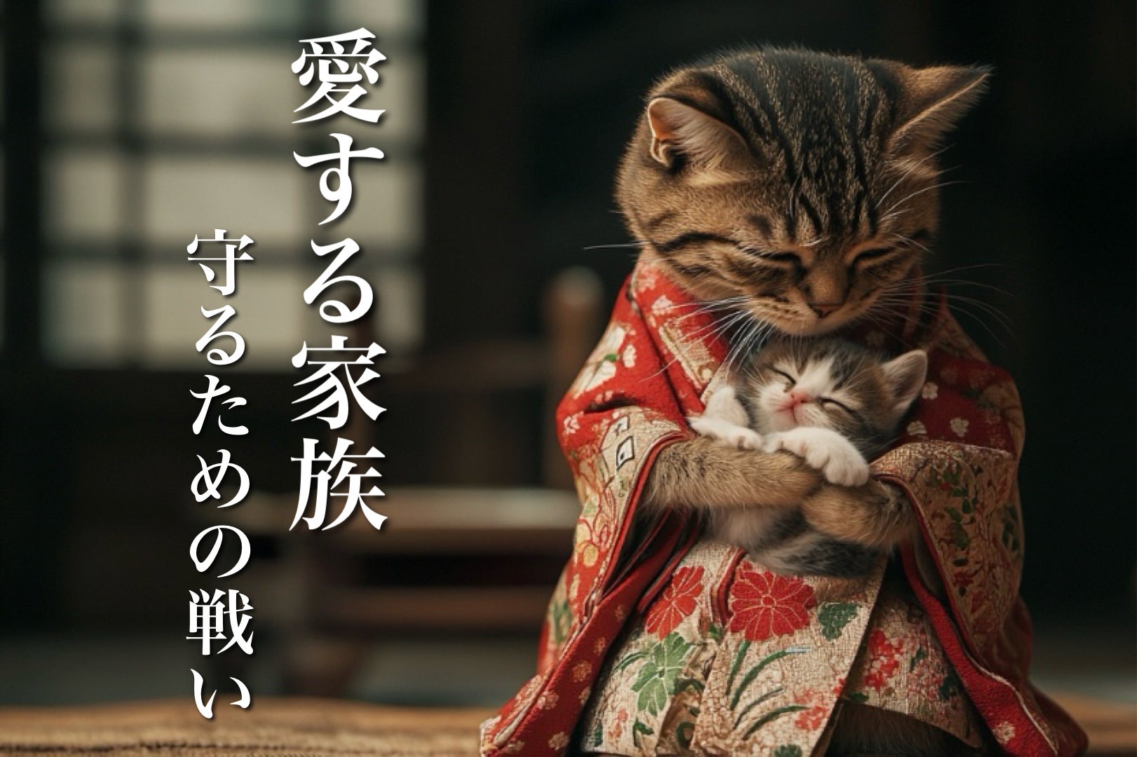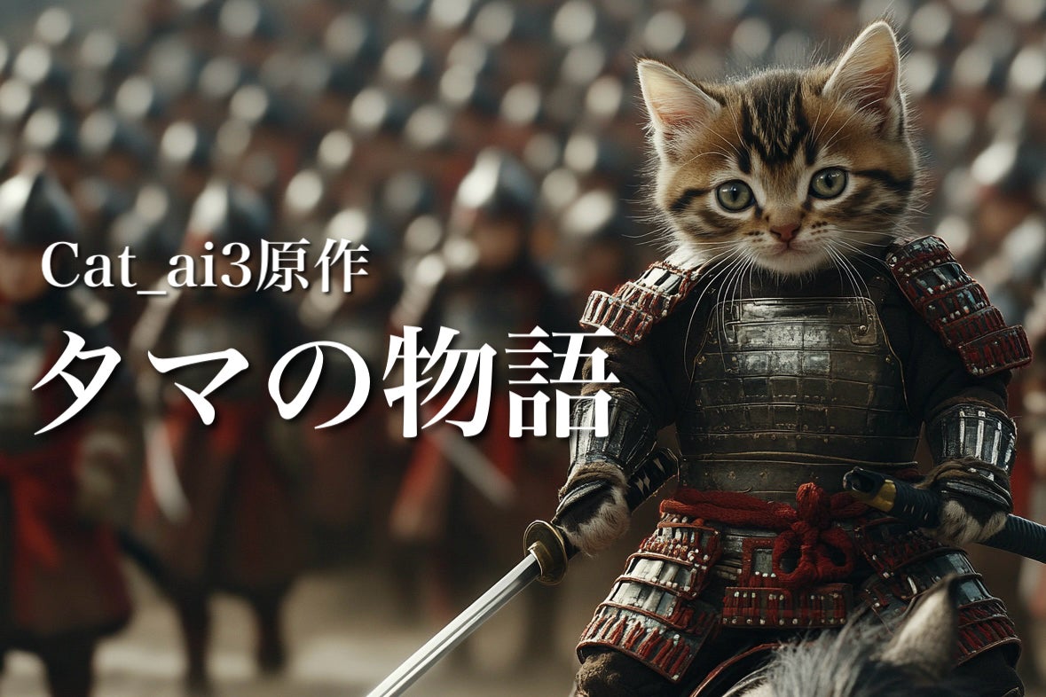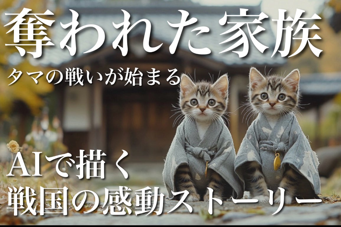 主人公は猫侍タマ。戦国の世で鬼に立ち向かい、やがて将軍として仲間と国を守ります。この物語はTikTokで累計400万回再生を超えた人気AI漫画シリーズから誕生しました。