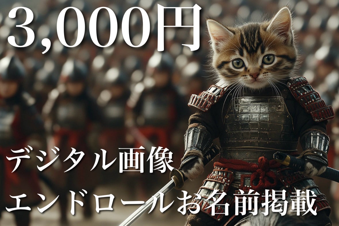 愛猫を2匹まで映画に登場させられる超限定プランです。愛猫様のお写真とお名前をお送りいただければ、愛猫様がタマと一緒に鬼と戦います。