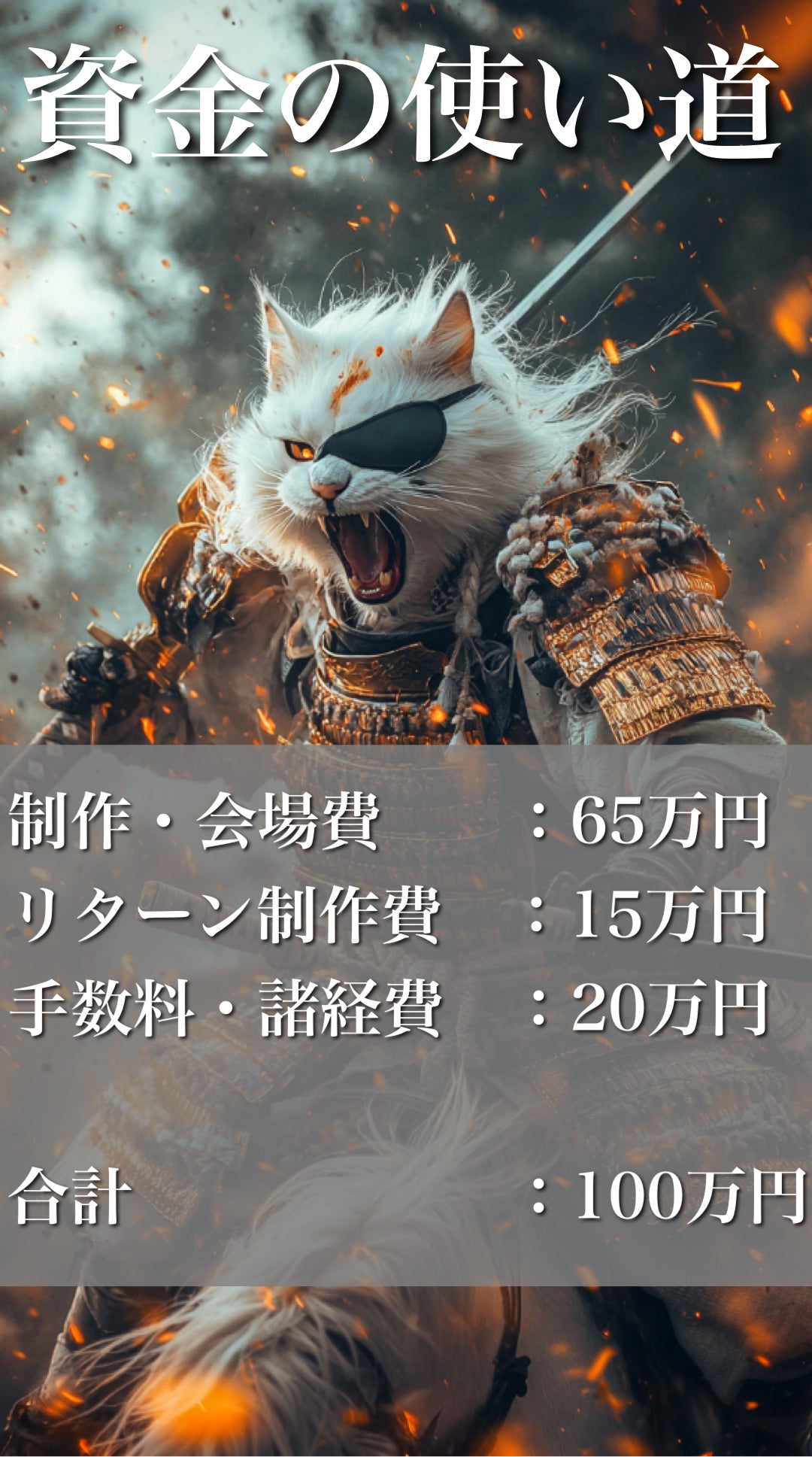 2025/10/08 18:56皆さま、温かいご支援と応援コメント、本当にありがとうございます!クラウドファンディング開始から1週間が経過し、これまでに 27名の方から合計355,000円 のご支援をいただきました。心から感謝申し上げます。今回の「猫侍タマ 映画化プロジェクト」は、AI技術を使って“猫の侍が鬼と戦う”という、まったく新しい映像表現に挑戦しています。TikTokでも長く応援してくださった皆さんの声に背中を押され、こうして映画として形にできる一歩を踏み出せたことを本当にうれしく思っています。【お知らせ】完売していた「DVD付きプラン」「フォトブックプラン」を、多くのリクエストを受けて各5個ずつ追加いたしました!数量限定となりますので、「迷っていたけどやっぱり支援したい!」という方はぜひこの機会にご検討ください。また、今週は支援者限定の「特典デジタル画像 第2弾」も配布予定です。支援者の皆さまにはLINEまたはメールでお届けいたします。タマと共に、鬼を討つ戦いはまだ始まったばかり。最後まで、どうか応援よろしくお願いいたします。—— AIクリエイター 長谷川 もっと見る