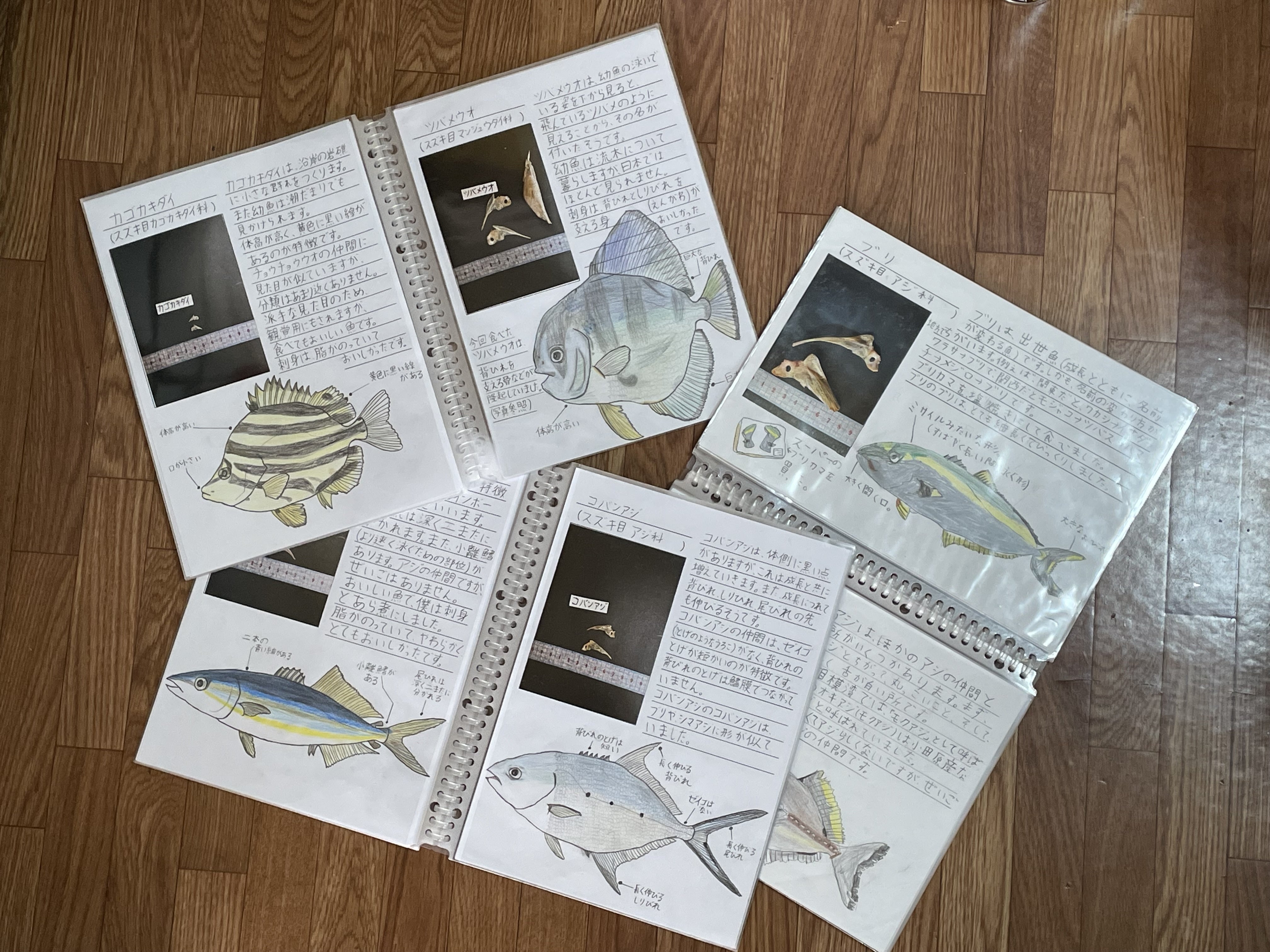 小学5年生の夏に始めたこの研究は、夏休みだけで終わりませんでした。気づけば4年目に突入し、中学3年生になった今では第9巻まで完成し、収録した魚種は190種にまで増えました。