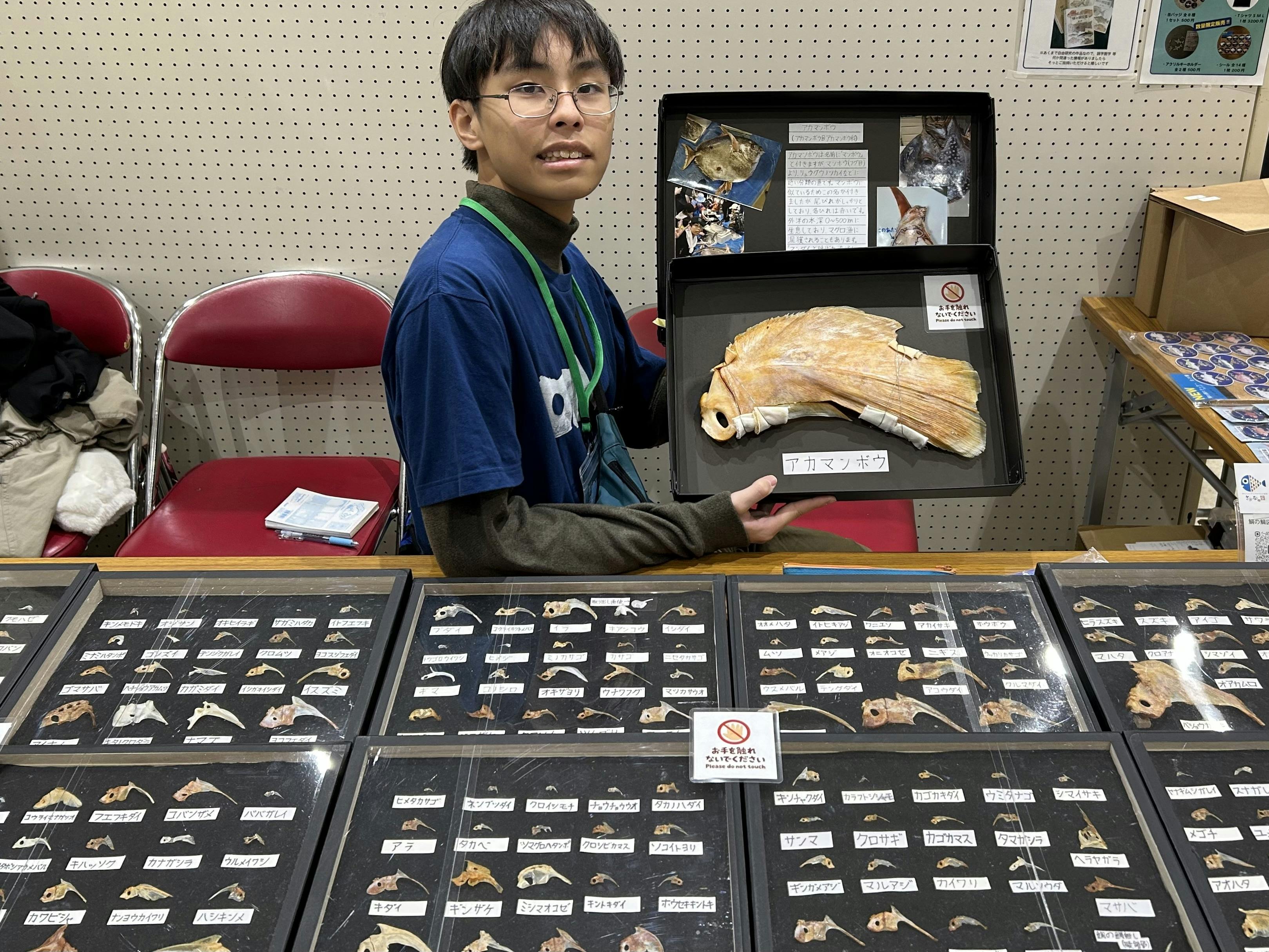 リターンのTシャツを着て大勢の方に標本や図鑑 見ていただいてます