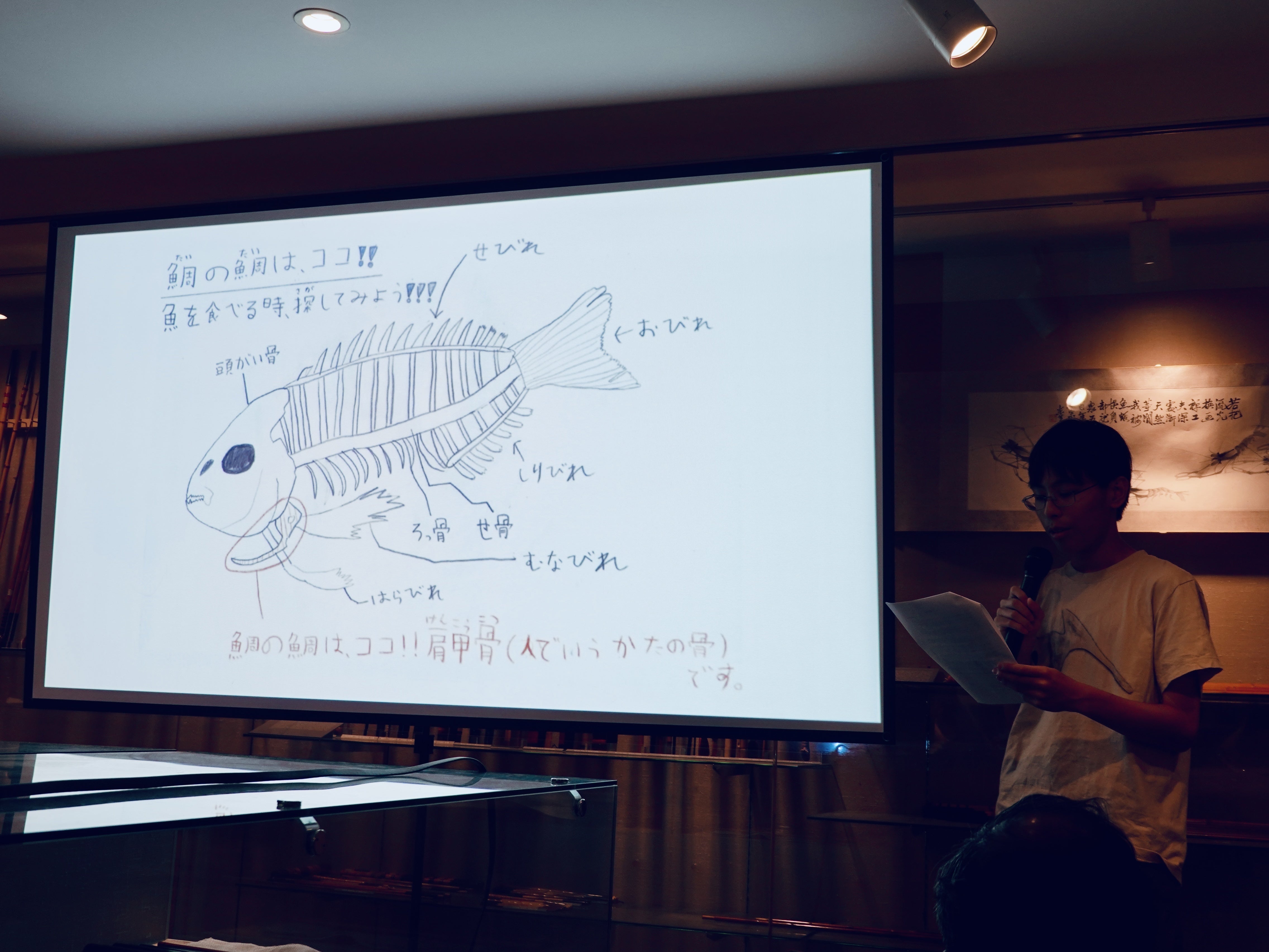 きっかけは、おばあちゃんの家に飾ってあった一つの「鯛の鯛」。これはキンメダイのものでしたが、どの魚にもある骨だと知り、「比べてみたい!」と思ったことから始まりました。