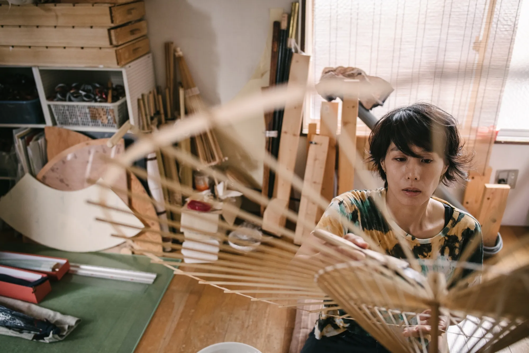 和傘づくりは100を超える工程から成り立ち、その多くは職人の「体で覚えた感覚」に支えられています。和紙の張り具合、力の入れ方、油の温度管理、漆の乾き具合──すべては経験の積み重ねであり、マニュアル化はできません。