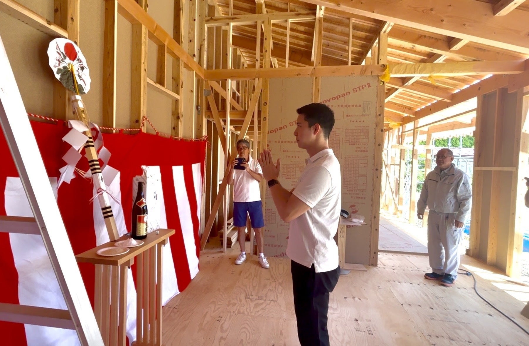(上棟を祝い、工事の安全と完成後のご加護を祈願)
