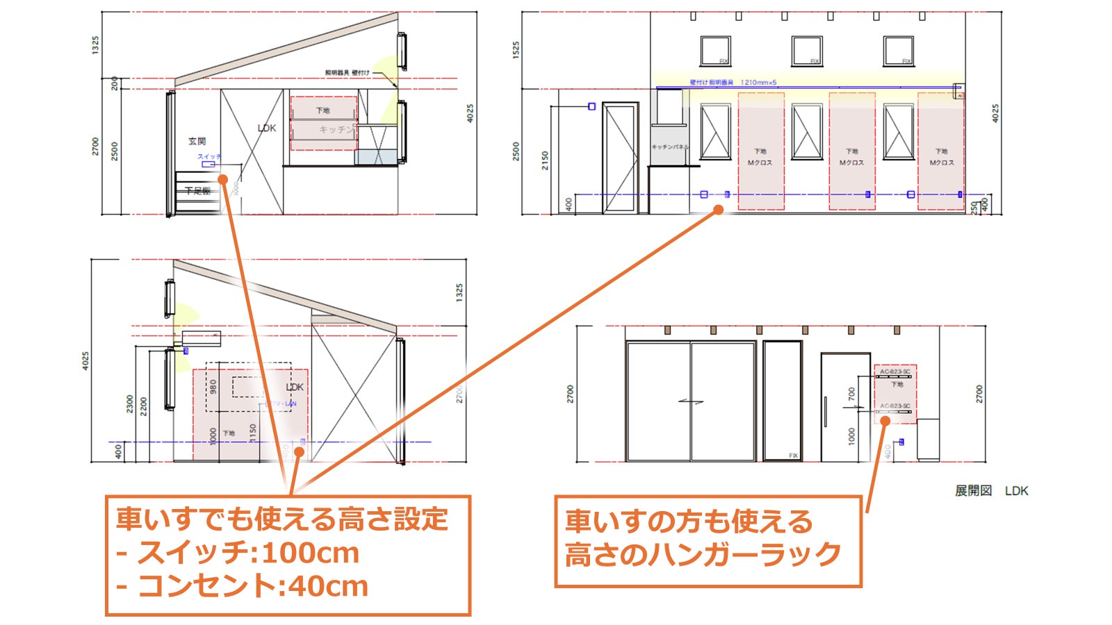 ・スイッチ/コンセントなど車いすでも手が届く高さ