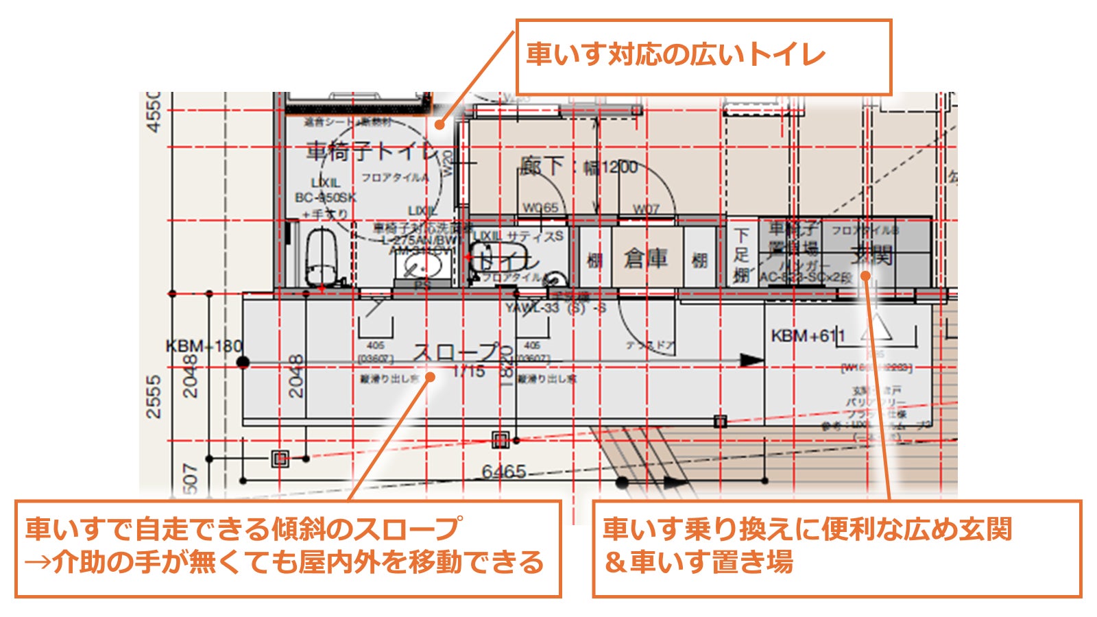 車いすでも安心の「広さ」「傾斜」