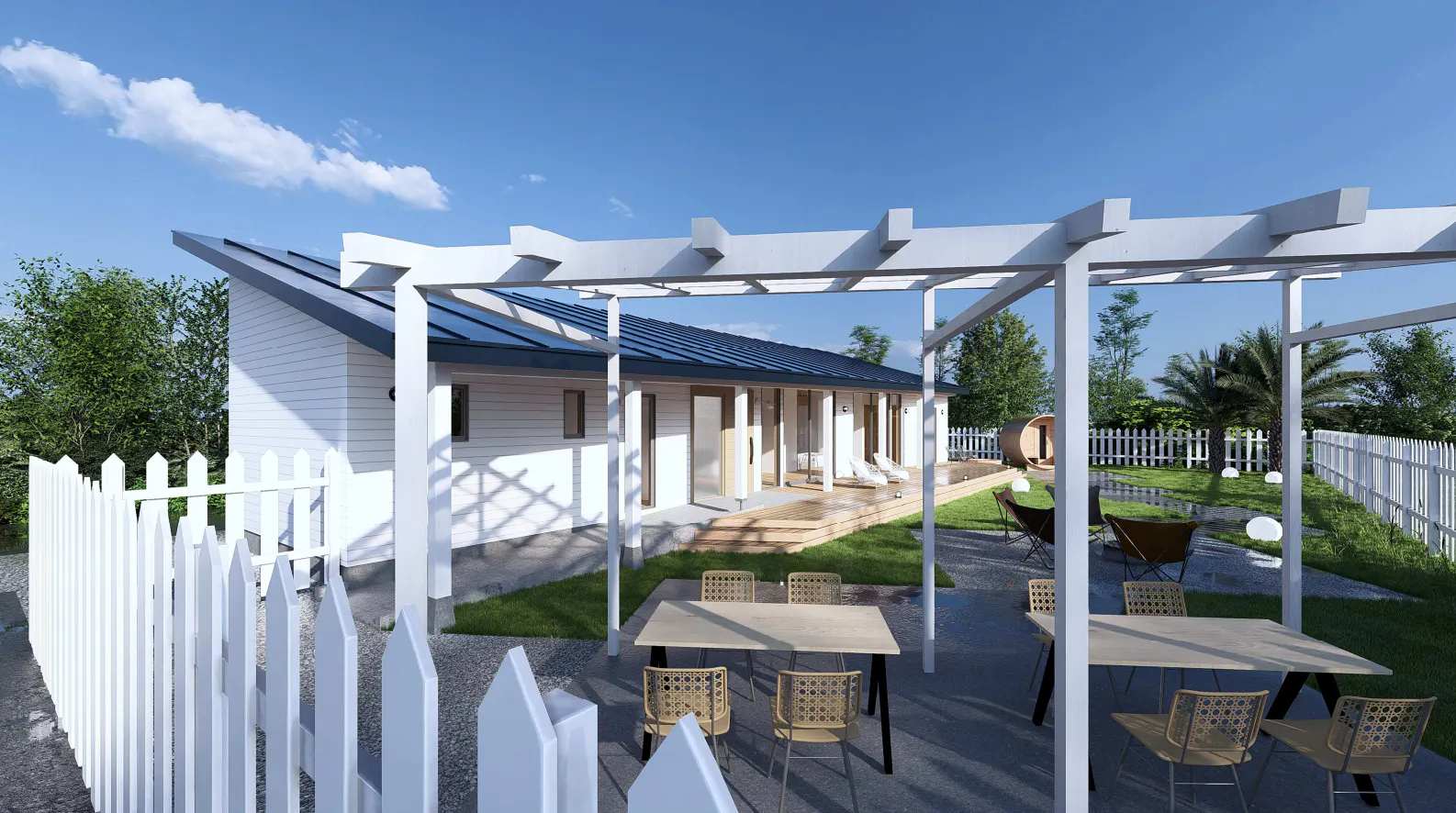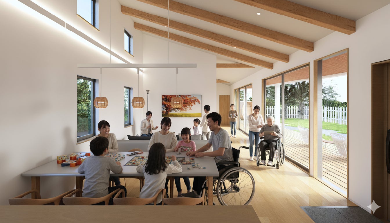 私たちは九十九里の貸別荘をバリアフリーの屋外動線まで整え、家族や仲間と同じ視点で同じ時間を楽しめる“ユニバーサルガーデン”を作ります。