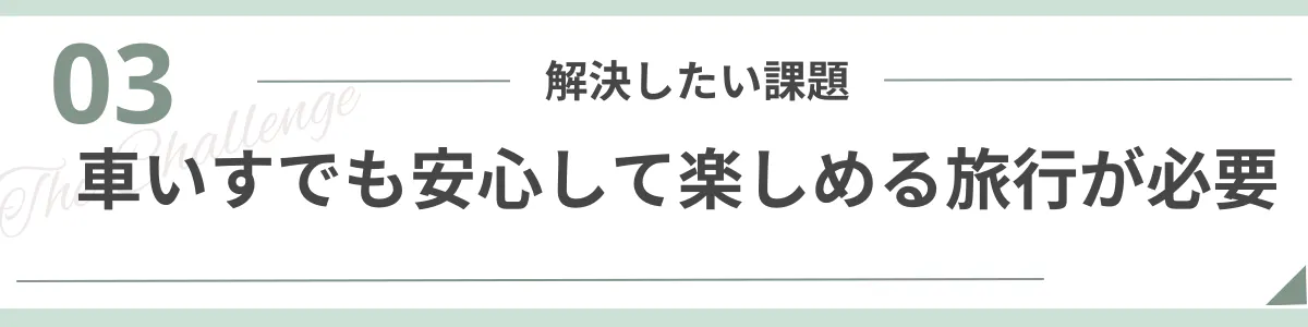 車いすを理由に旅を諦めていた方、旅行に出かけていても困っていた方に、安心で楽しい旅行体験を届けたい。