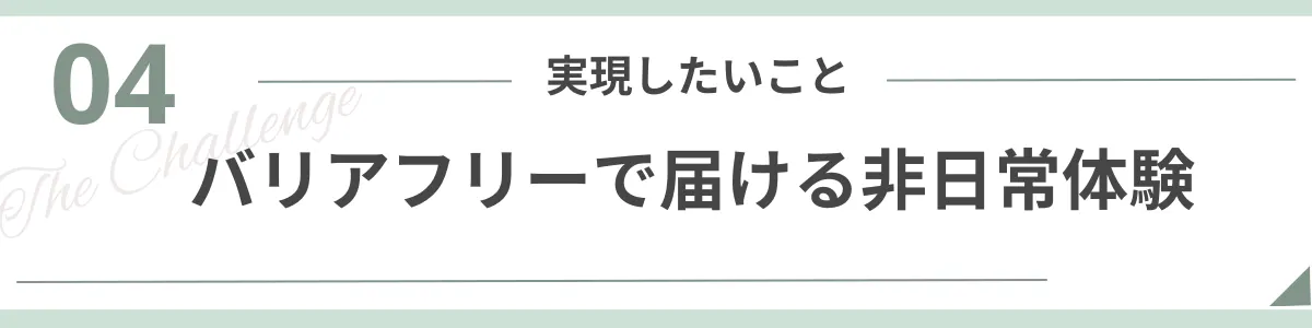 父の車いす生活の原体験や、車いすの方との出会い・親交を通じて、私たちは「非日常×バリアフリー」実現の意義を強く感じています。