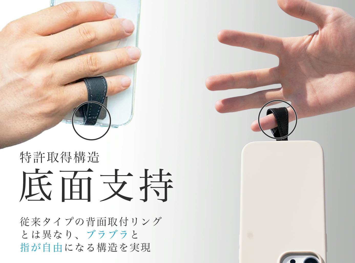 SYANTOは、スマホを握らずに持てるよう、最下部を支点とする独自のリング構造を開発しました。