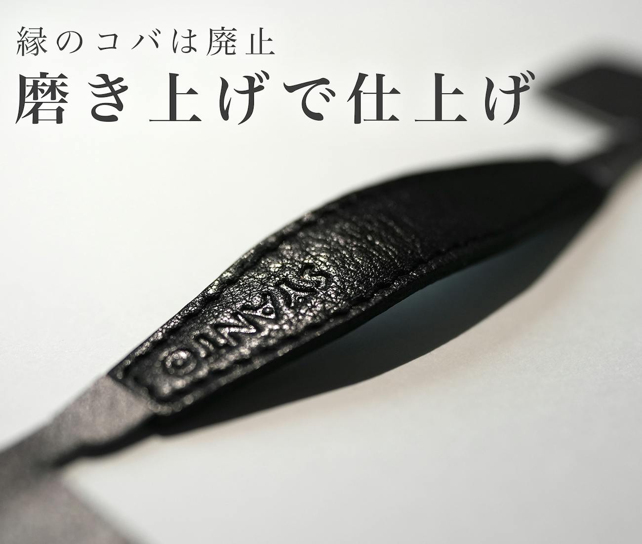 革の素材改善だけでなく、前回までの強度不足の意見が多かったコバは廃止し、更なる品質の向上を図りました。