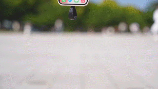 SYANTOの底面リング構造なら、スマホを逆さに吊り下げて持ち歩くことができるため、握らずにブラブラと、より快適で安全に移動できます。